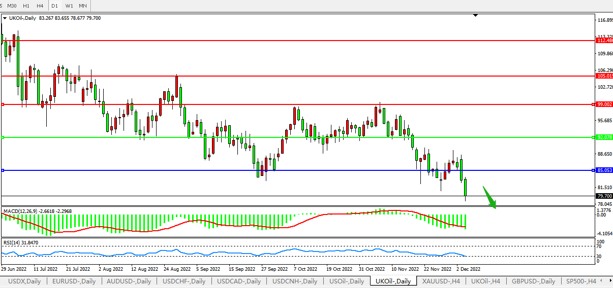 日线图看:短线价格加速下行,短期图形结构衰败有破位迹象, MACD量能柱0轴下放量,RSI持续下行,短期油价有进一步下行动能。