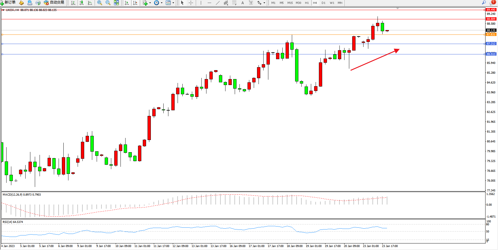 交易策略:87.831上方看涨,目标88.889、89.490