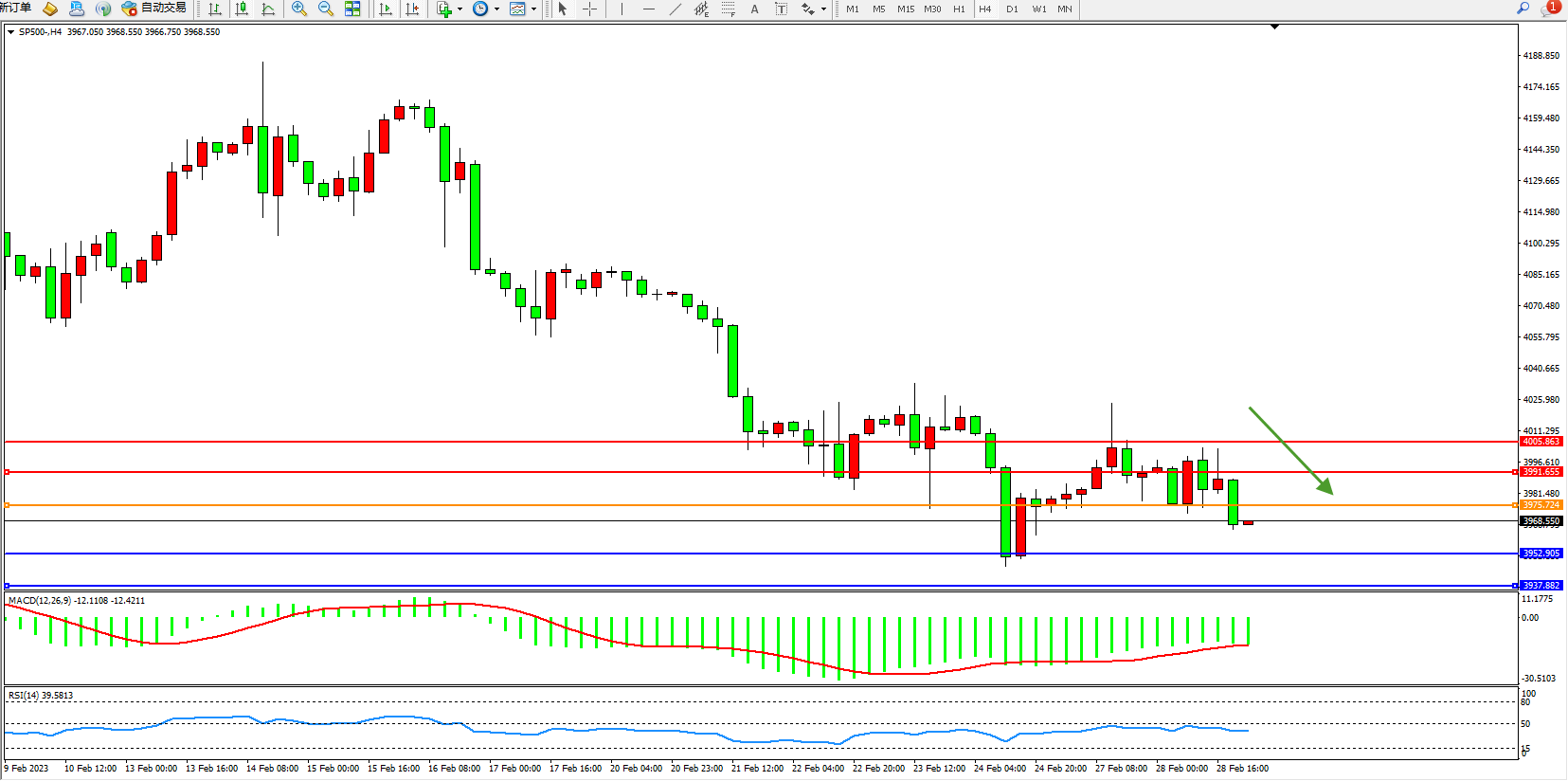 标普500指数2月28日(周二)收盘下跌11.64点,跌幅0.29%,报3970.60点;美国2月谘商会消费者信心指数录得102.9,为连续第二个月下降。预期指数现在已远低于80——该水平通常预示着明年将发生经济衰退。