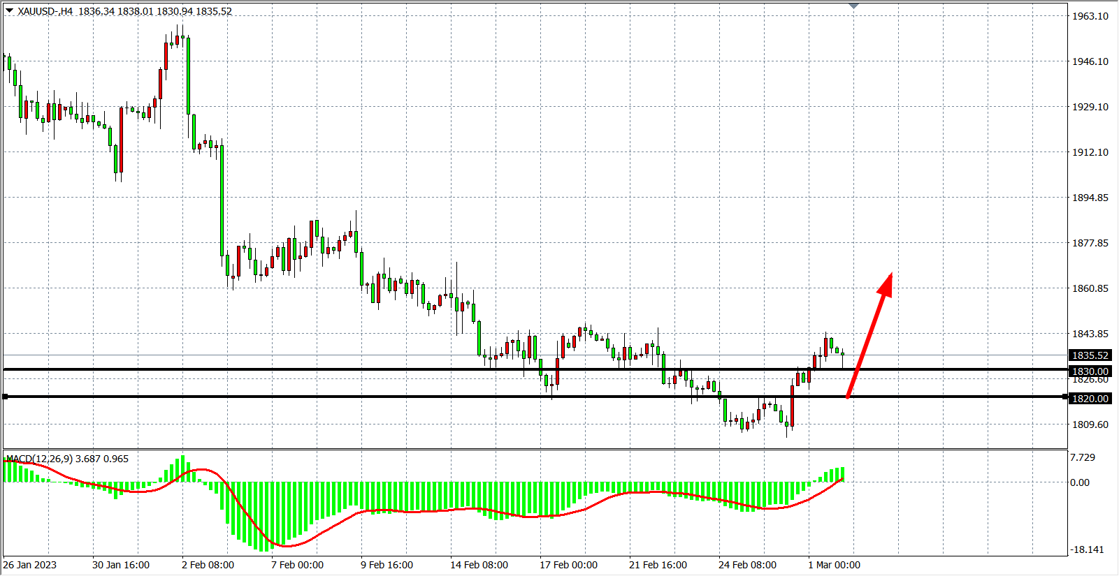 交易策略:在1820.00 之上看涨,目标1840.00 1860.00