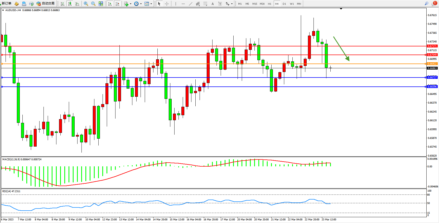 交易策略:0.66922下方看跌,目标0.66727 0.66896