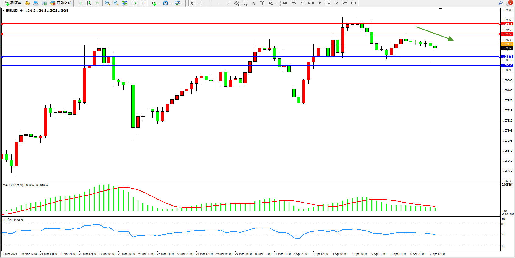 欧元兑美元维持1.09359附近中多,市场对欧元计价公司债券的强劲需求预计将支撑信贷市场。由于近期银行体系陷入困境,投资者对公司债券的良好需求可能会持续下去。