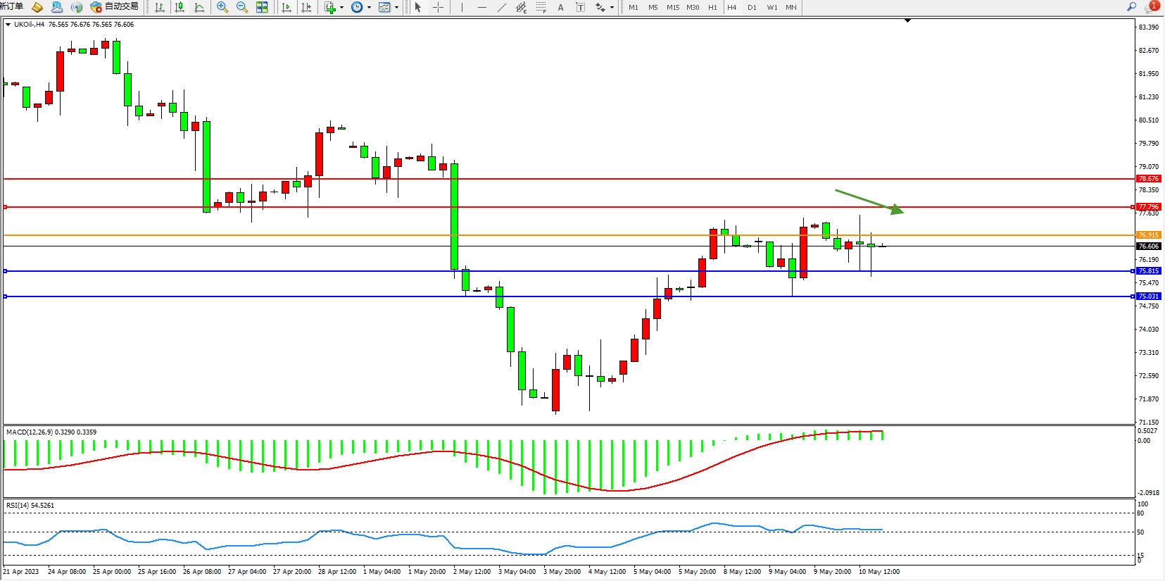 布油UKOil——4小时K线图显示: