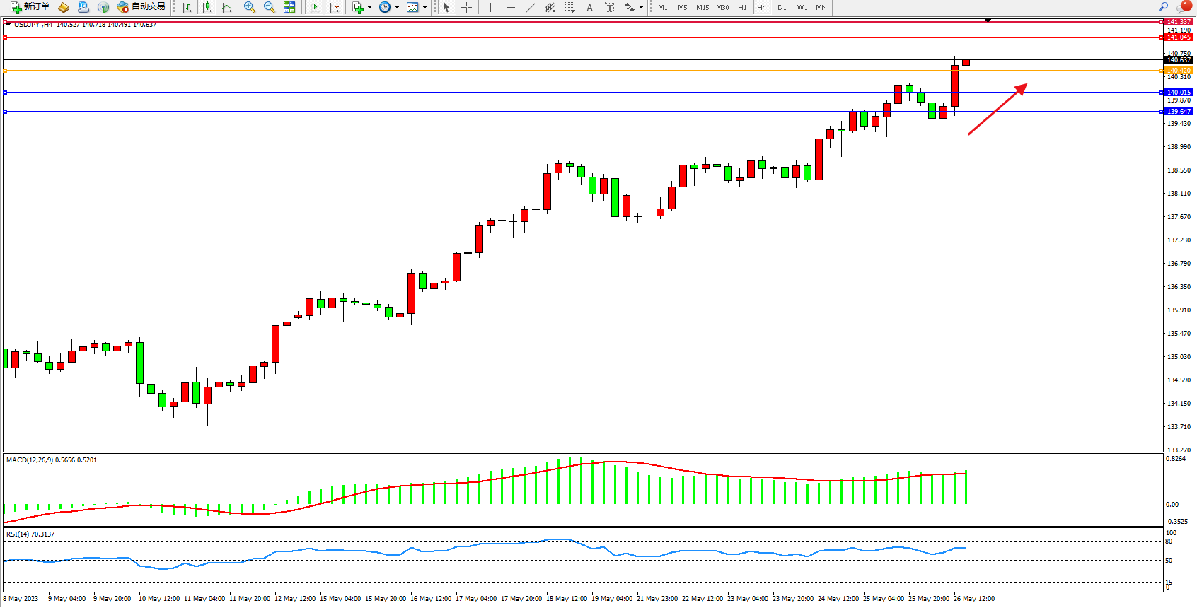 交易策略:140.420上方看涨,目标141.045 141.337