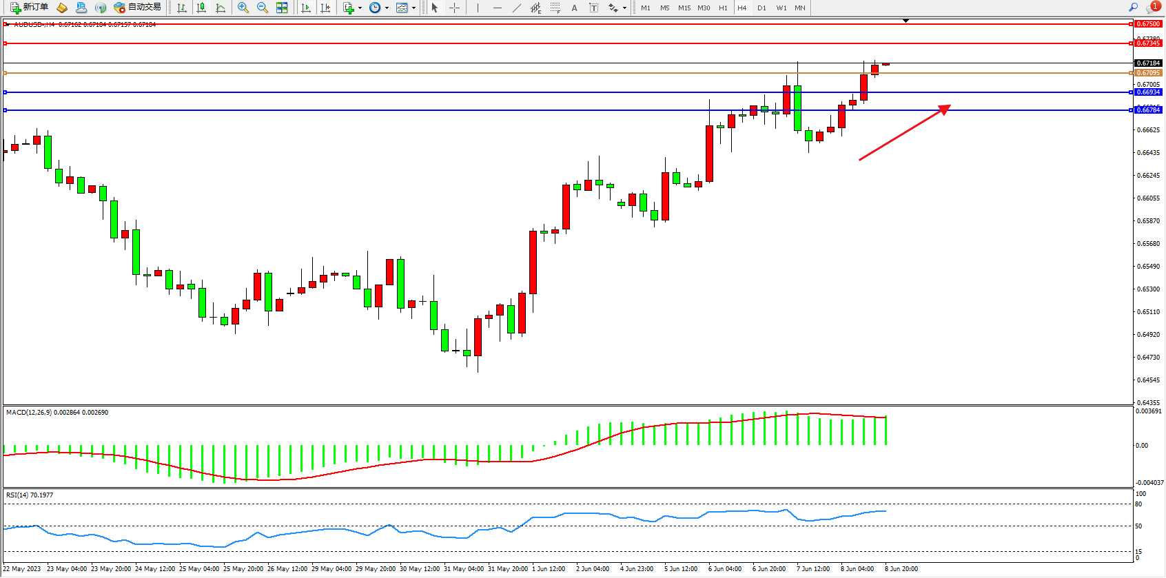 阻力位:0.67345  0.67500
