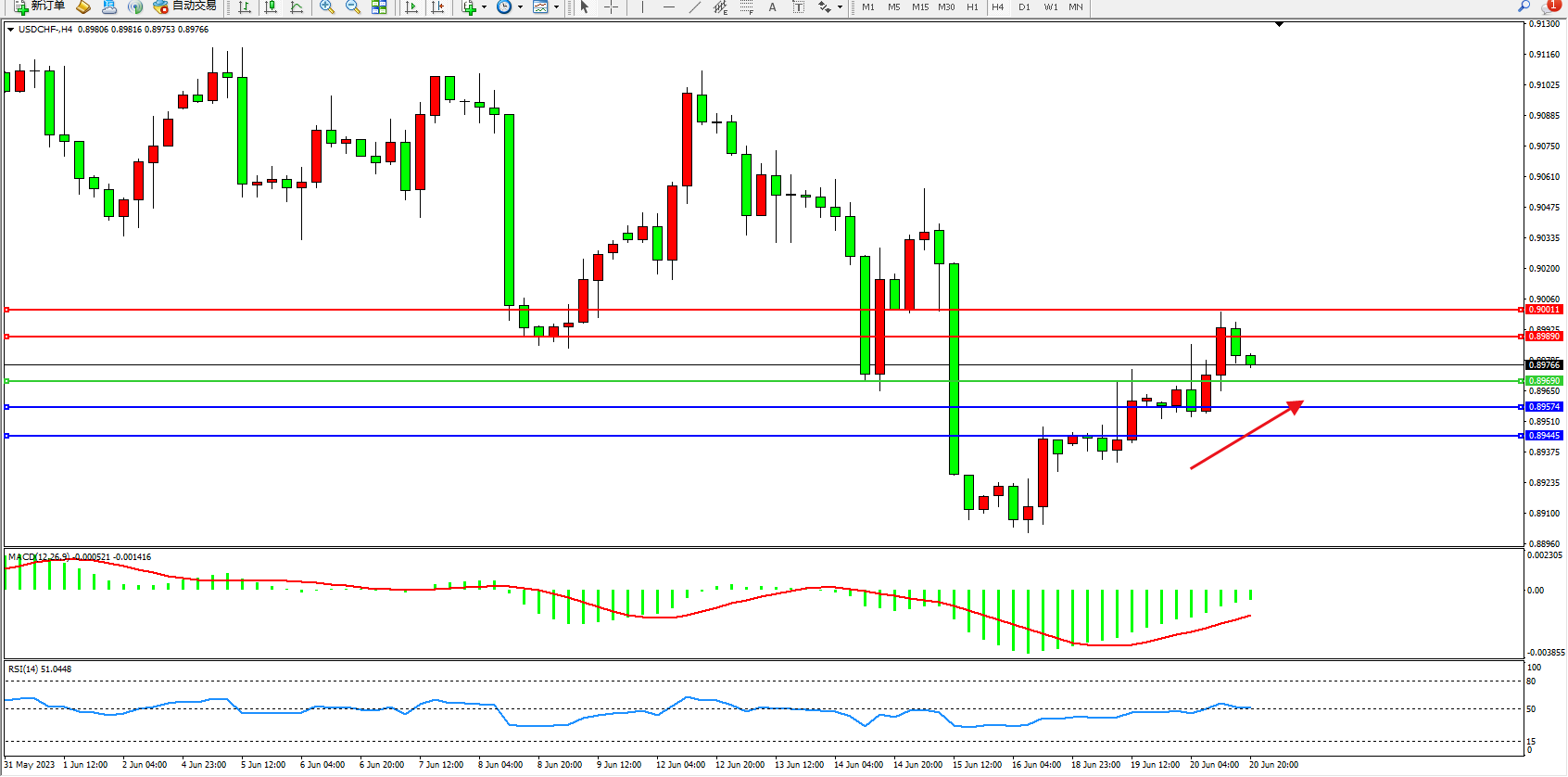 美元瑞郎USDCHF——4小时K线图显示: