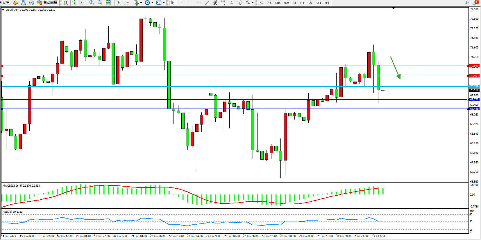 阻力位:70.593 70.947