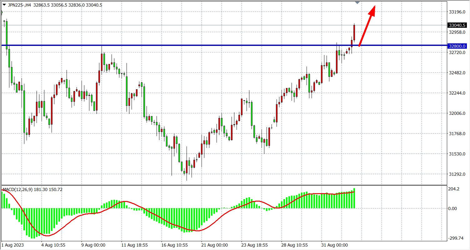 周一(9月4日)日经225指数收盘上涨172.50点,涨幅0.53%,报32900.00点。据报道,日本政府计划额外拨出约200亿日元支援渔业企业。报道援引共同社的消息称,日本政府计划在下周初宣布这些措施。