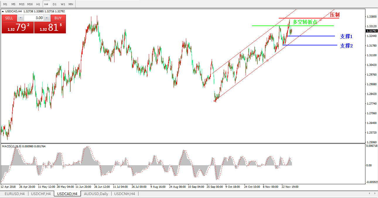美元加元USDCAD4小时图: