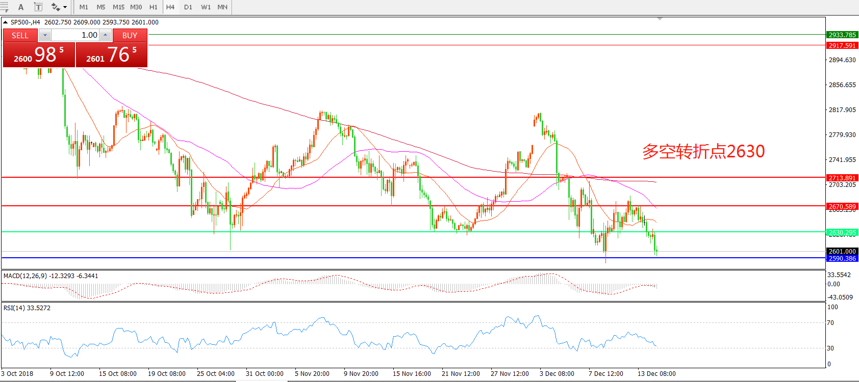 标普500SP500 4小时图