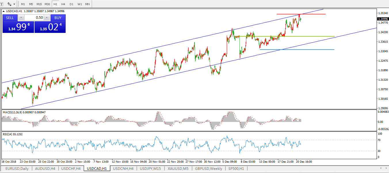 美元兑加元USDCAD小时图