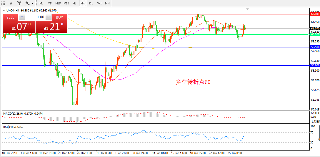 交易策略:在60.00之下看跌,目标58.50   56.00