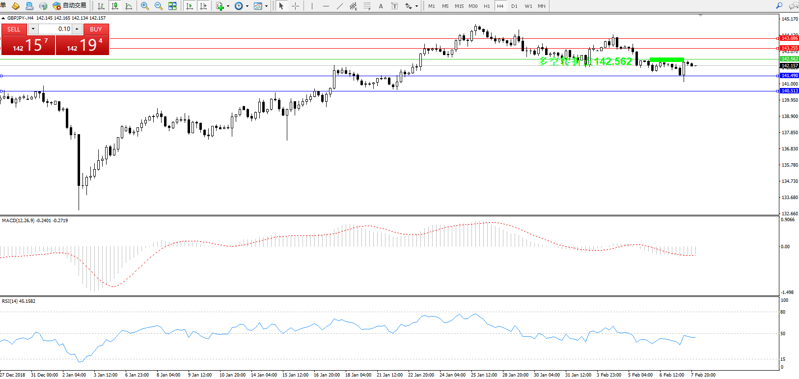 交易策略:142.562下方看跌,目标141.490140.513