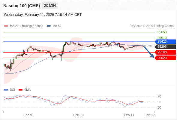 在 25420 之下,看跌,目标价位为 25160 ,然后为 25020 。