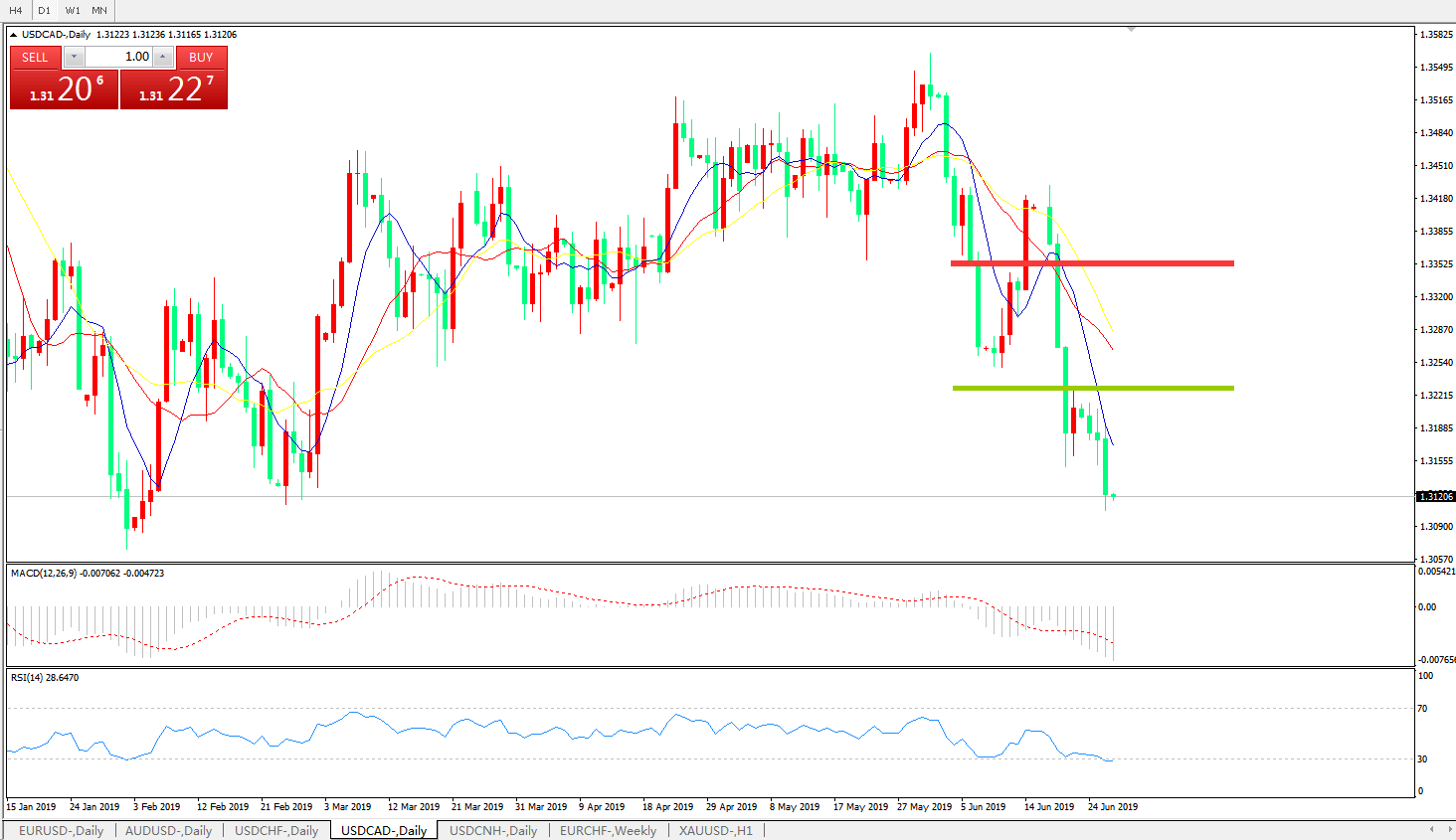 EIA报告显示:美国至6月21日当周原油库存变化值创2016年9月9日当周以来新低,美国原油“井喷”或不可持续。报告显示,美国至6月21日当周EIA原油库存录得减少1278.8万桶,远低于预期和前值,创146周新低。此外,美国俄克拉荷马州库欣原油库存变化值连续3周录得增长后本周录得下滑,且创2018年7月13日当周(50周)以来新低。虽然美元兑加元本月已下跌过一波,但其有可能进一步跌至1.30下方。国债利差缩窄、美元走弱等因素都利好加元,此外股票回报率也是驱动因素之一,不过其驱动效果有所下降