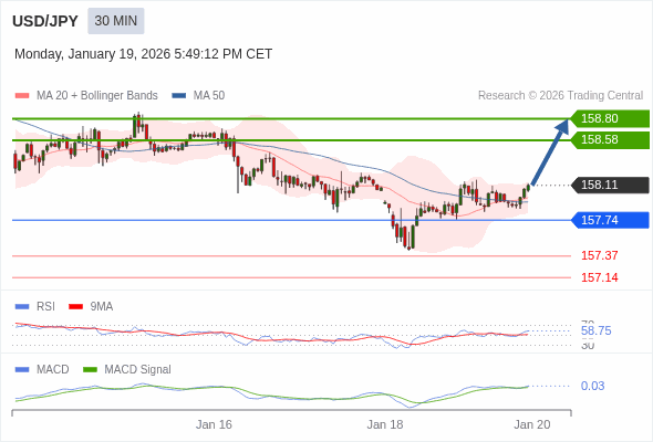 美元/日元 当日内 : 看涨,当 157.74 为支撑位。