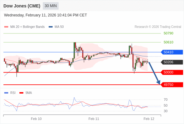 交易策略: 在 50410 之下,看跌,目标价位为 50000 ,然后为 49750 。