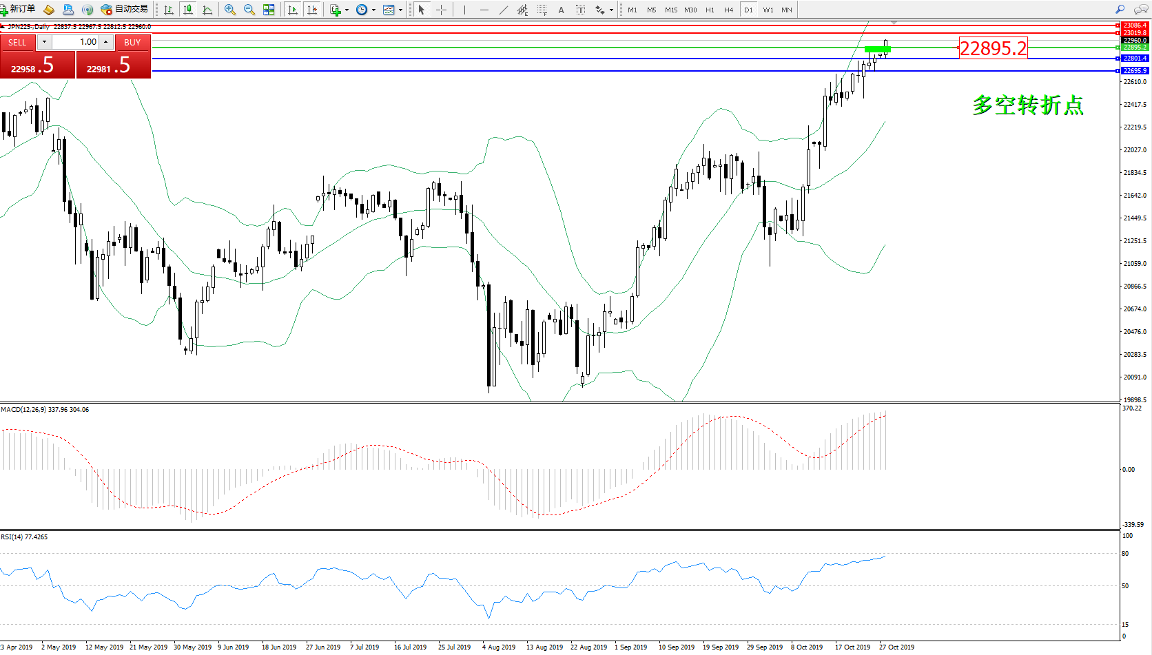 技术点评:多头持续上攻已突破多日高位,延续布林带指标上轨持续上行中,且尚未由减弱迹象,MACD指标多头区域维持高位震荡上行中,RSI指标处于多头区域80均衡线下侧持续上扬中;