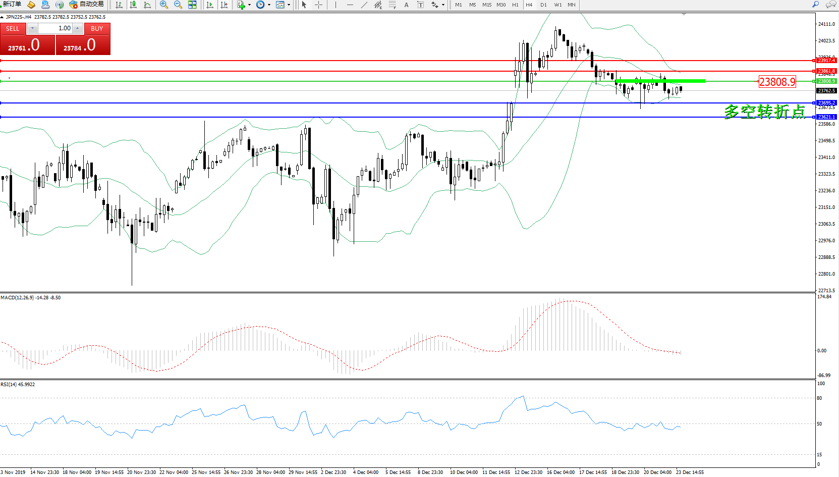 日经225指数12月23日(周一)收盘上涨5.37点,涨幅0.02%,报23822.00点。上周日本央行宣布维持-0.1%利率不变,符合市场预期,政府推出的刺激计划、中美贸易谈判取得进展以及全球经济放缓触底的迹象提振了经济前景;关注日本央行公布10月货币政策会议纪要。