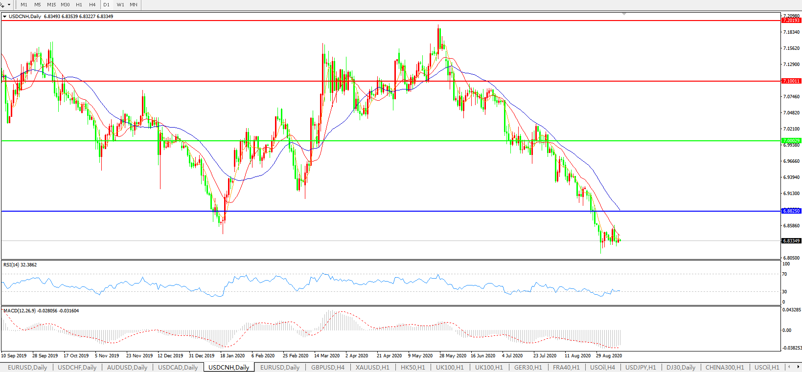 美元兑人民币USDCNH 日线图: