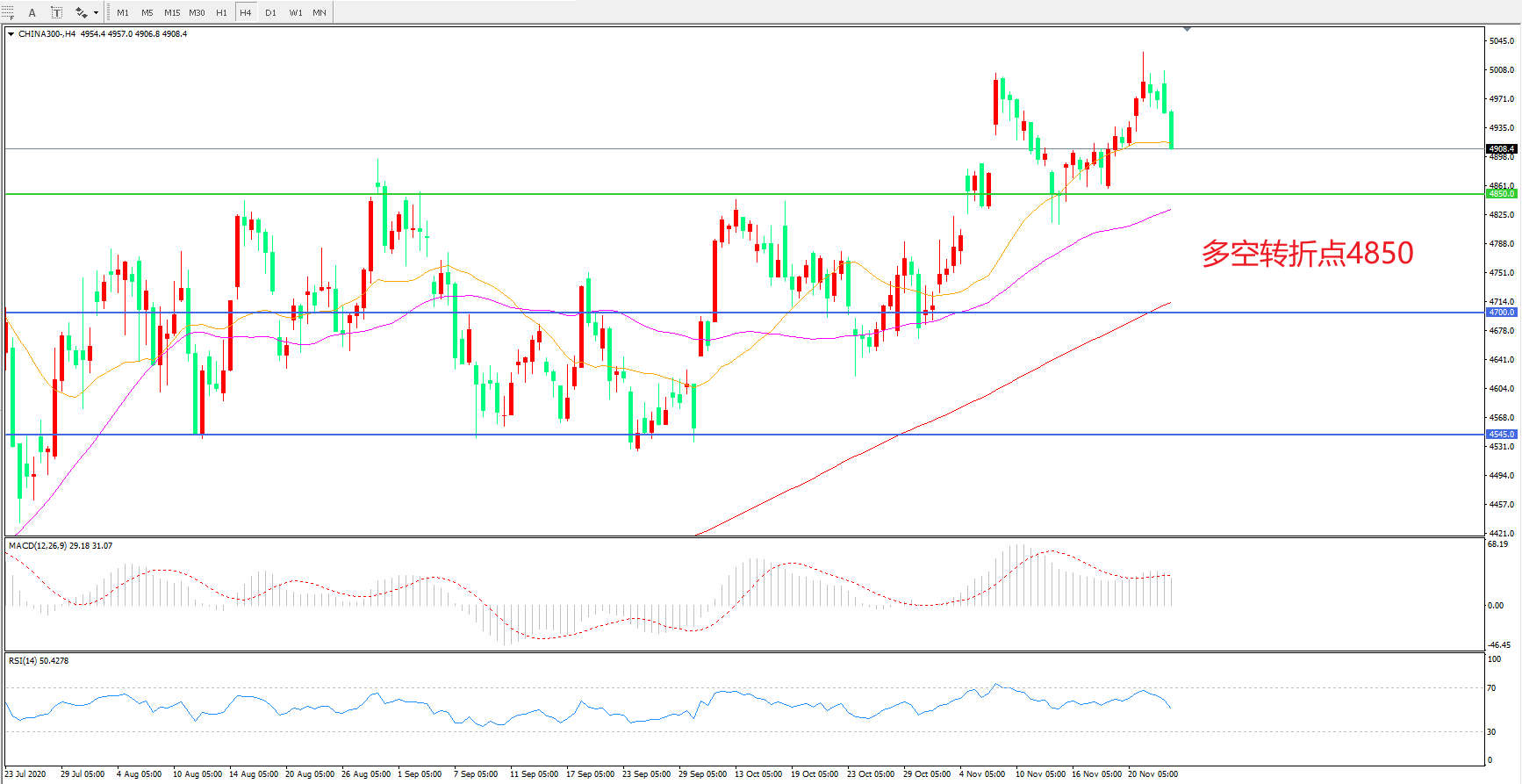 多空转折点:4850.00
