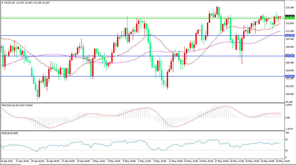 4小时图看,油价以113.5美元为依托小幅反弹,整体表现回暖,均线系统走平,MACD红柱缩短,RSI指标走平,日内延续强势概率较大。