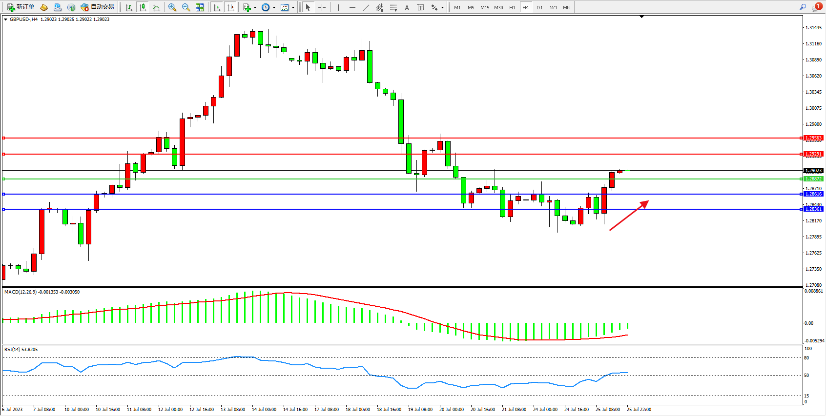 交易策略:1.28872上方看涨,目标1.29291  1.29563